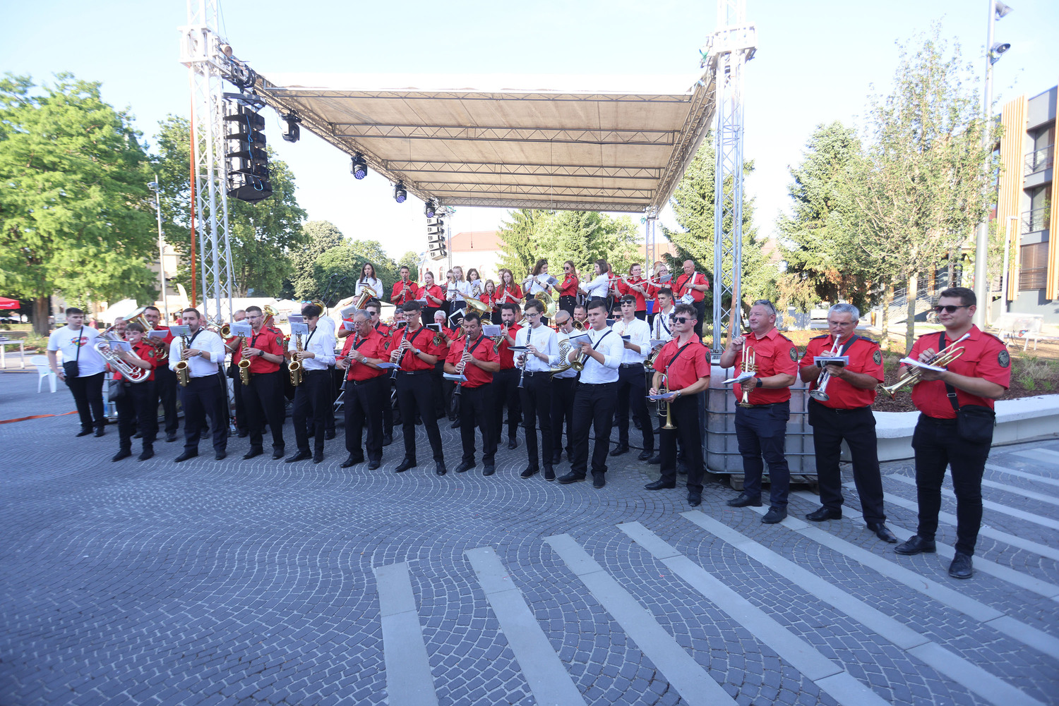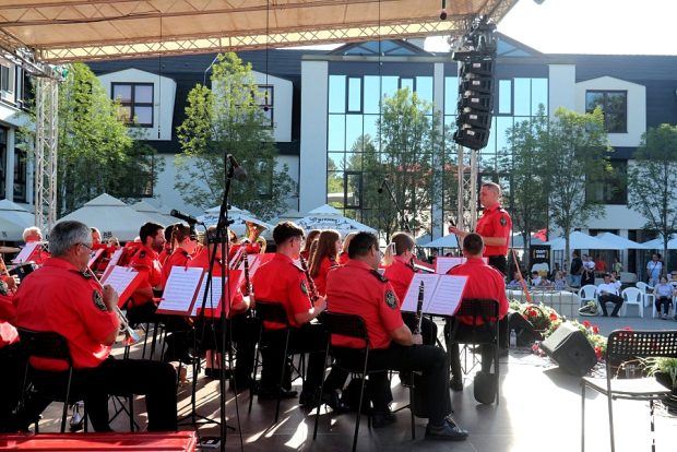 Gradski puhački orkestar Krapina je uz svoje domaćine, koji su ujedno i organizatori revije, nastupio na pozornici na Trgu sv. Jurja na tradicionalnoj reviji puhačkih orkestara ‘Bandisti i pajdaši’. Unatoč visokoj temperaturi tog subotnjeg popodneva, ova glazbena poslastica privukla je mnoštvo ljubitelja dobre glazbe.